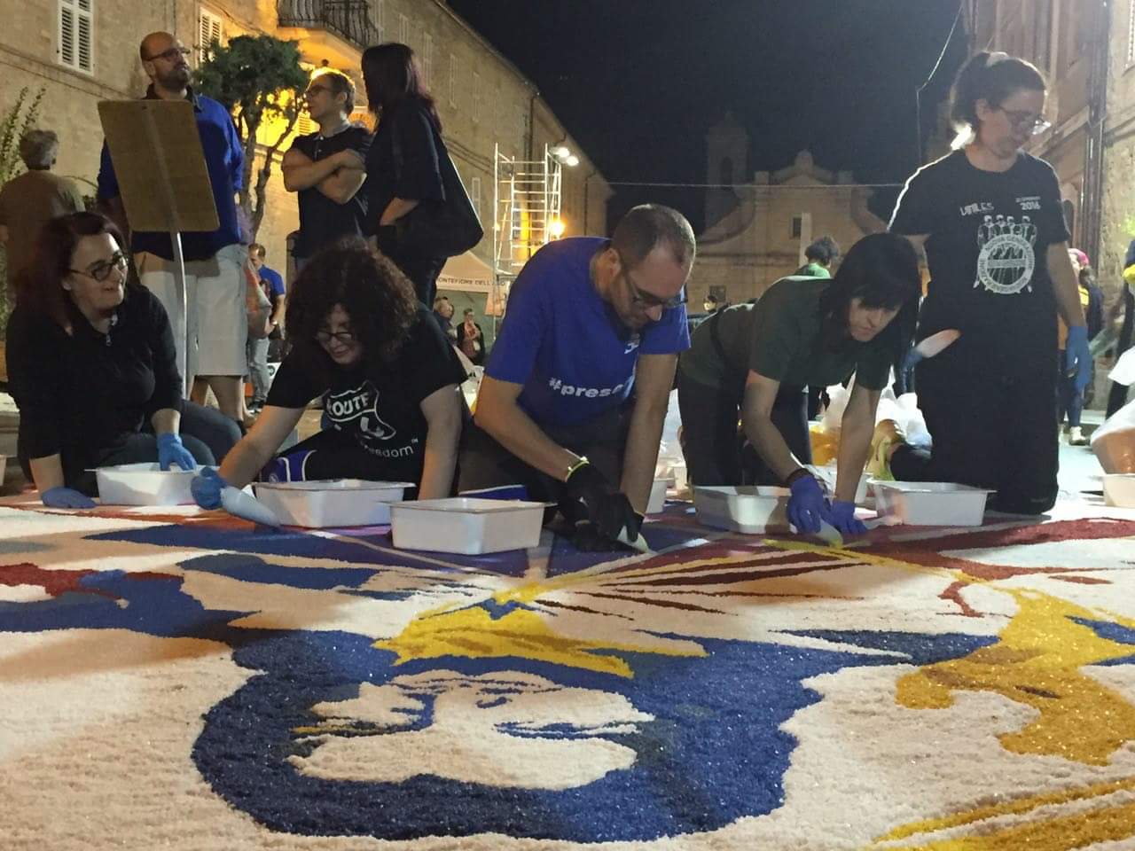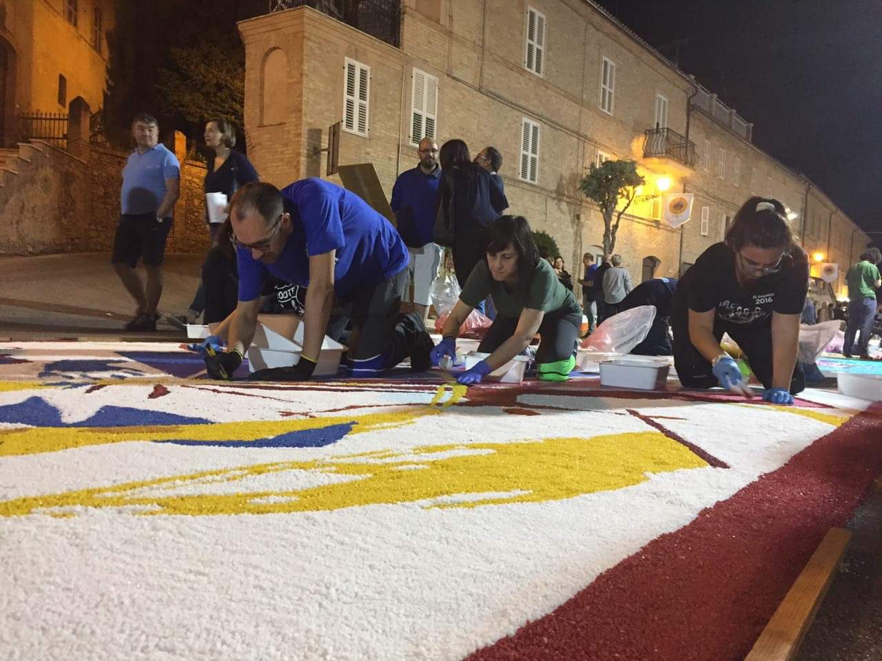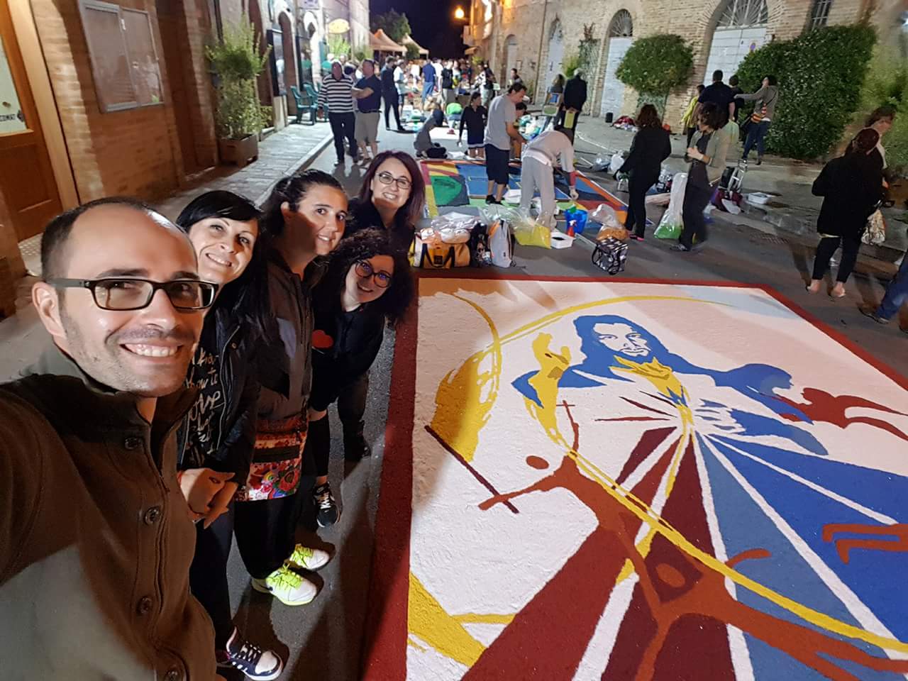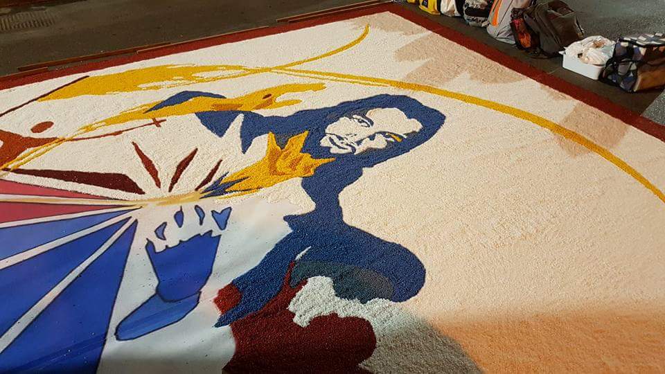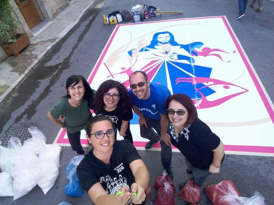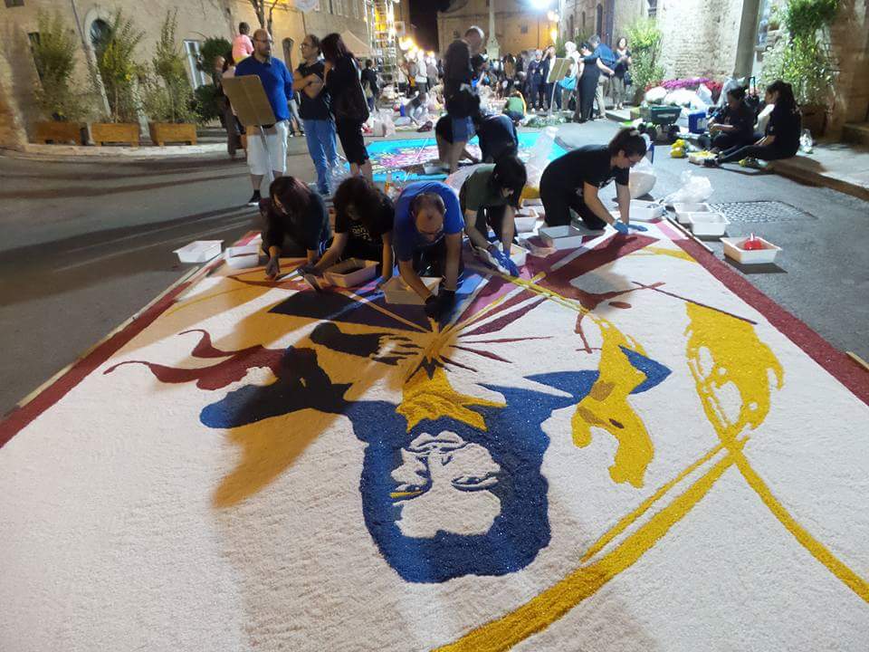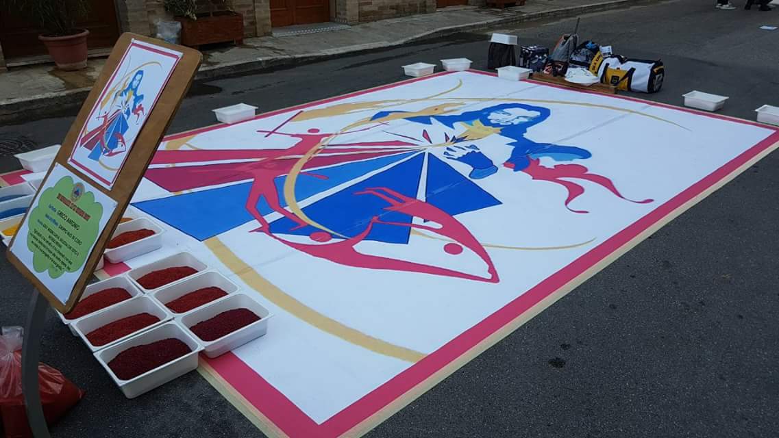 Perché la fatica che, immancabilmente la mattina presto si fa sentire, si avverte come offerta: al Signore che passerà sopra questi tappeti si dona, infatti, oltre la bellezza delle opere e l’eleganza dei colori, la creatività, l’ingegno, il talento, l’arte e la gioia con cui il tutto si vive, in modo intenso, con la fede. Sì perché il Protagonista resta sempre e solo Gesù…che attraversa ogni strada, fino alla più piccola curva delle nostre città, come una Presenza sempre forte e viva!
