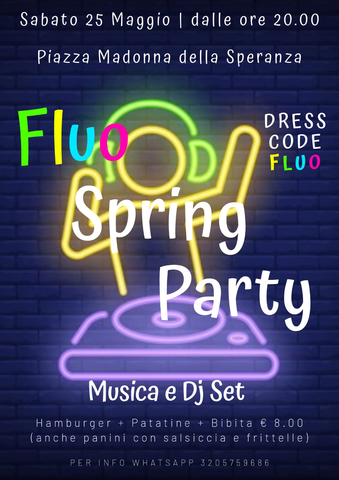 Sabato 25 alle ore 16 si aprono gli stand gastronomici e la pesca di beneficenza. Per tutti i bambini e i ragazzi, giochi e animazioni. Alle ore 21, il FLUO SPRING PARTY (dress code fluo – musica – DJ set).