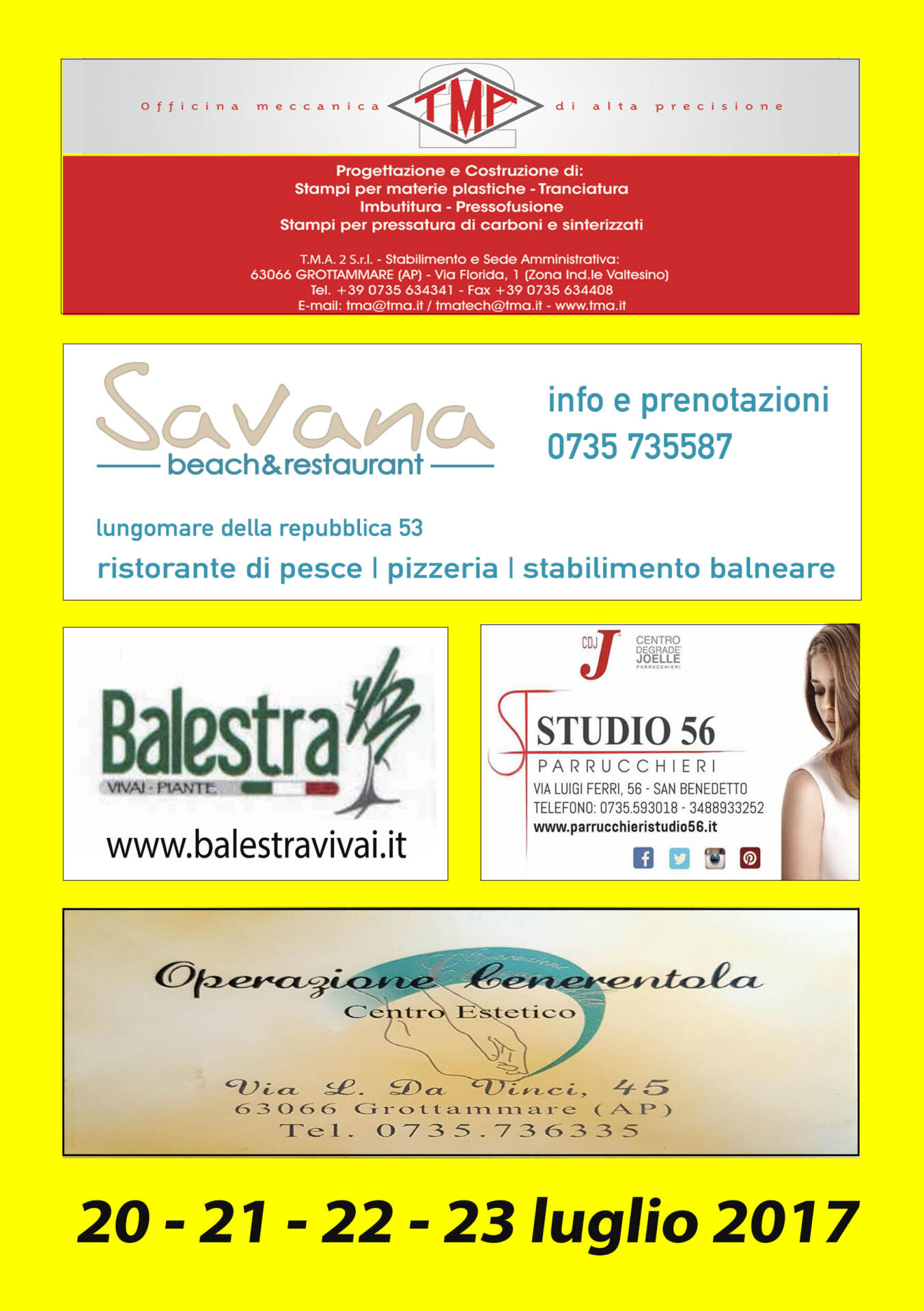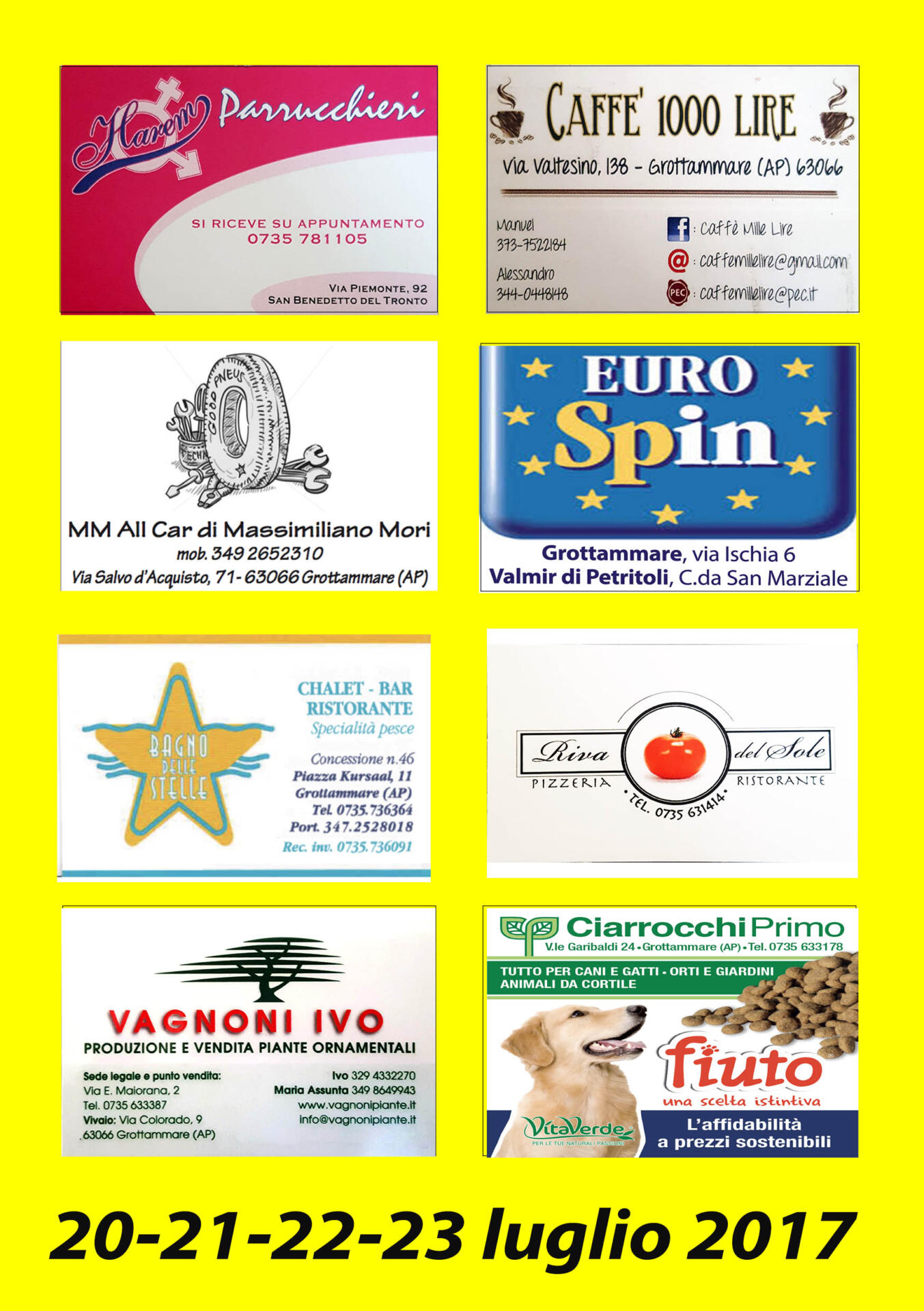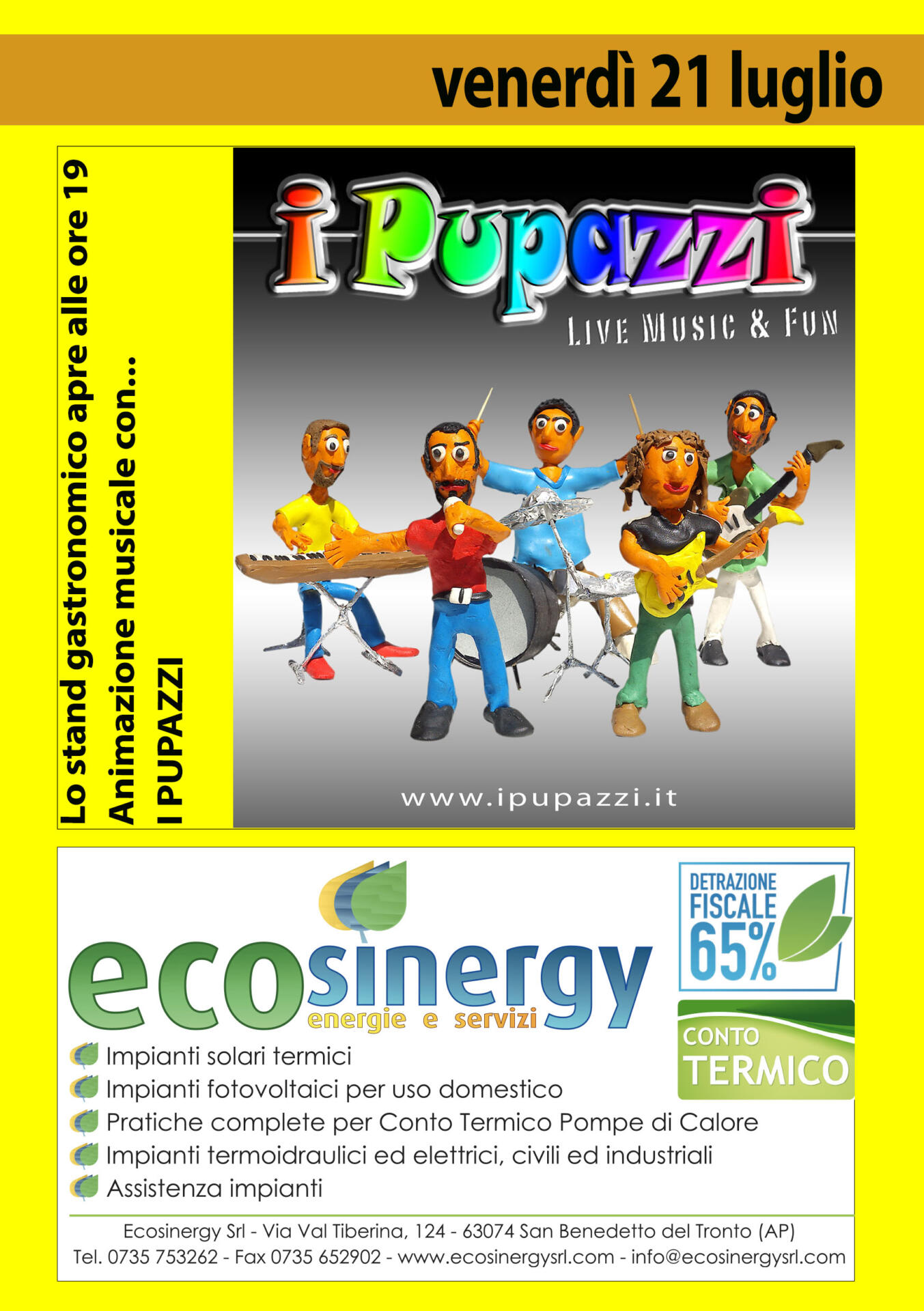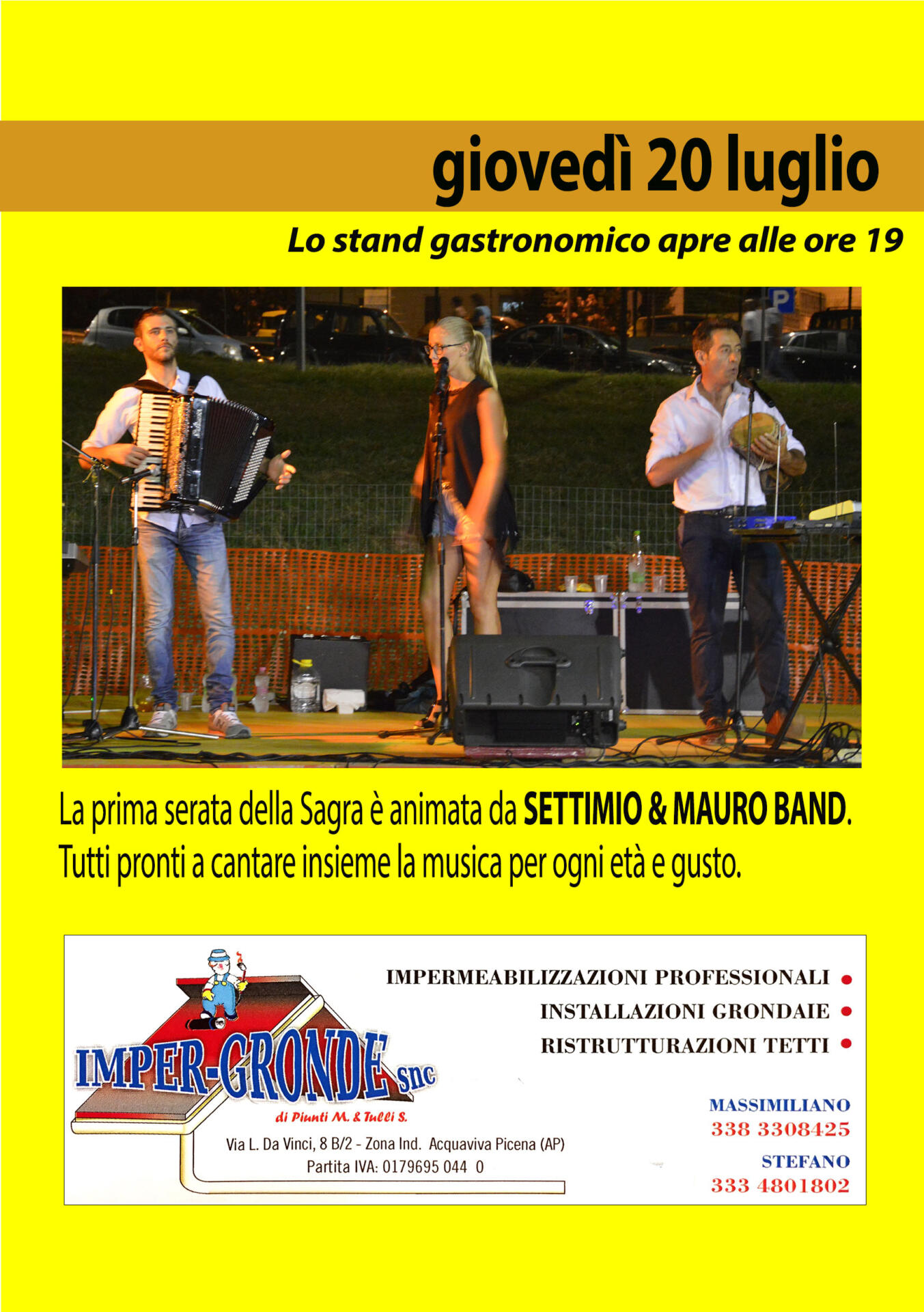 Le serata saranno animate dai migliori gruppi musicali. Giovedì 20: Settimio e Mauro band. Venerdì 21: I Pupazzi. Sabato 22: The Holograms. Domenica 23: Rock Anthology.