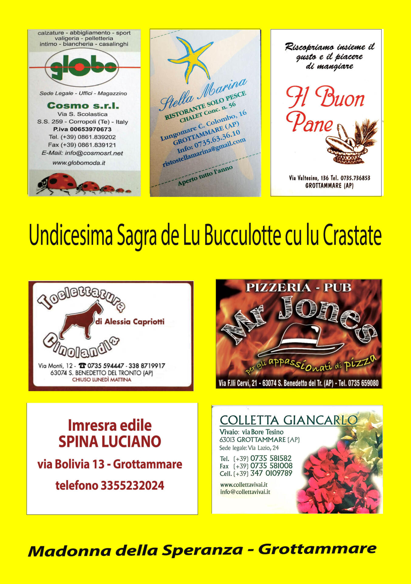 Anche quest’anno torna la Sagra de lu Bucculotte cu lu Crastate. Dal 20 al 23 luglio, a Grottammare, presso la chiesa “Madonna della Speranza”, sulla Valtesino. E siamo all’Undicesima edizione.